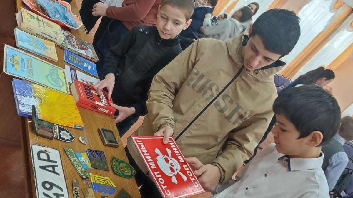 Также учащимся представилась возможность ознакомиться с экспонатами передвижной выставки предметов из зоны боевых действий. Особые эмоции ребята испытали, получив возможность посмотреть фронтовые трофеи, подержать в руках оружие, примерить амуницию.