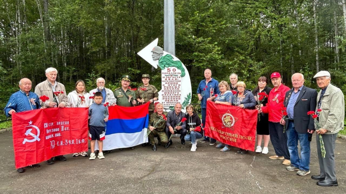 Историческая реконструкция была завершена, а группа ветеранов из Южно-Сахалинска посетила Стеллу, которая напоминает сахалинцам и гостям острова о том, что он был несправедливо разделен на северную и южную часть, и 79 лет назад, победоносная Красная Армия восстановила историческую справедливость - Южный Сахалин и Курильские острова вернулись в родную гавань.