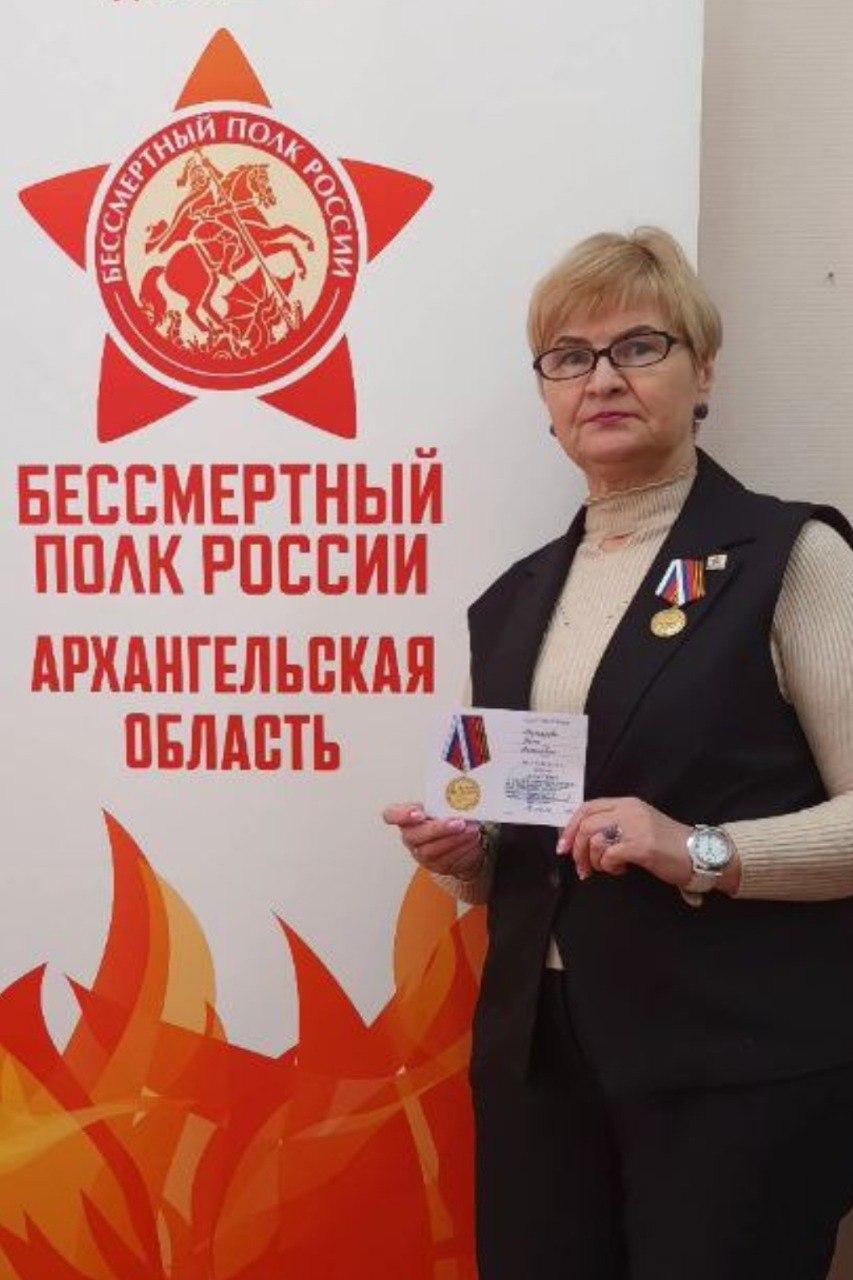 В преддверии Международного женского дня общественной награды удостоена руководитель регионального штаба Бессмертного полка России в Архангельской области Нина Антоновна Харгалова. За активную гражданскую позицию и вклад в поддержку военнослужащих она награждена медалью «Участнику гуманитарной помощи».