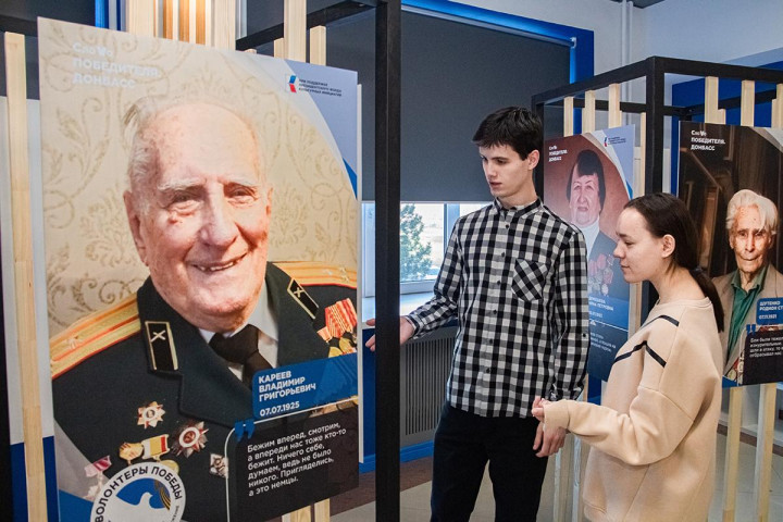 «В этом году наше Движение запустило проект «СлоVо Победителя. Донбасс». Он посвящен сохранению исторической памяти и ветеранам Великой Отечественной войны, чьи жизни и подвиги связаны с новыми территориями. Наши добровольцы в ДНР и ЛНР посещали героев, помогали им по хозяйству, поздравляли с праздниками и, что самое главное, записывали их видеовоспоминания. К проекту подключились Волонтёры Победы и других регионов. Они также собрали архив воспоминаний ветеранов, которые родились на Донбассе, защищали, освобождали или восстанавливали его в годы Великой Отечественной войны или послевоенное время. На основе собранной информации и была создана выставка, а также буклет, который будет передан в образовательные организации Донецкой и Луганской Народных Республик», - отметила Исполнительный директор ВОД «Волонтёры Победы», член Центрального штаба Бессмертного полка России Анастасия Рябова.