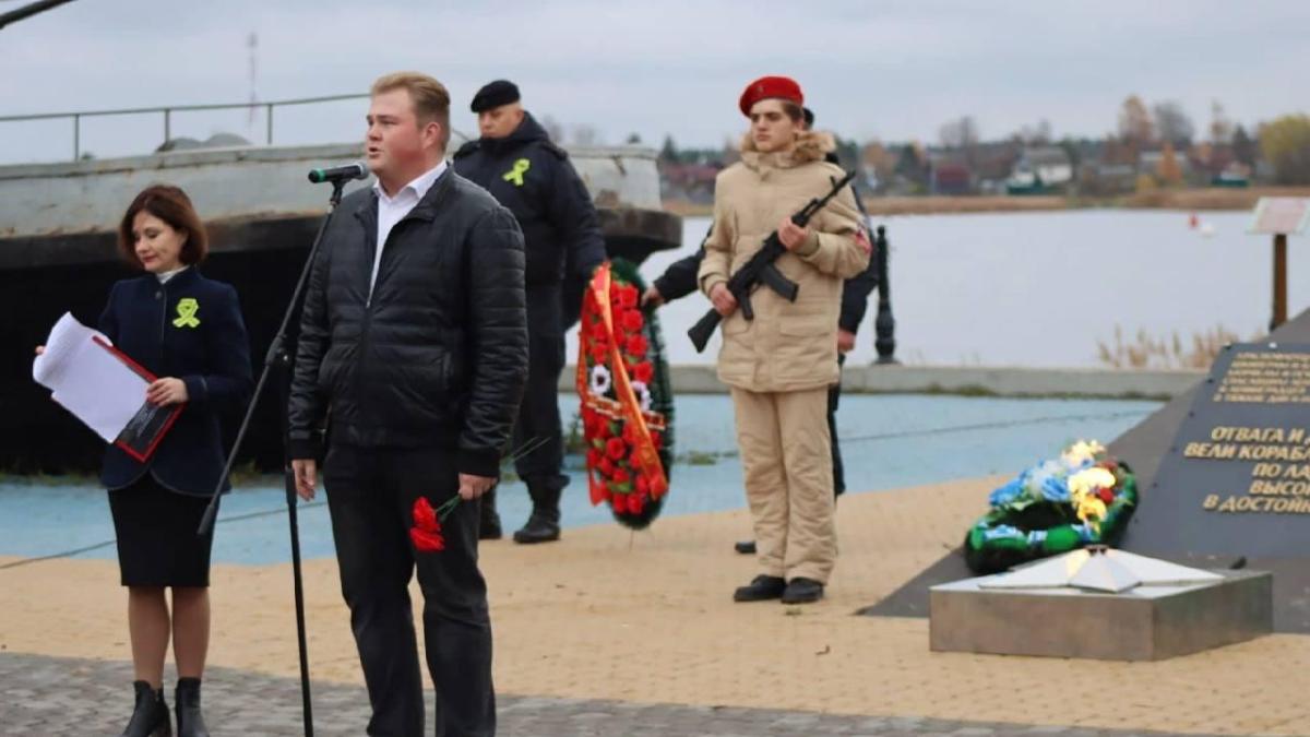 В память о подвиге защитников прошли митинг у тральщика ТЩ-100 с участием спасателей поисково-спасательного отряда города Новая Ладога и возложение цветов к мемориалу.