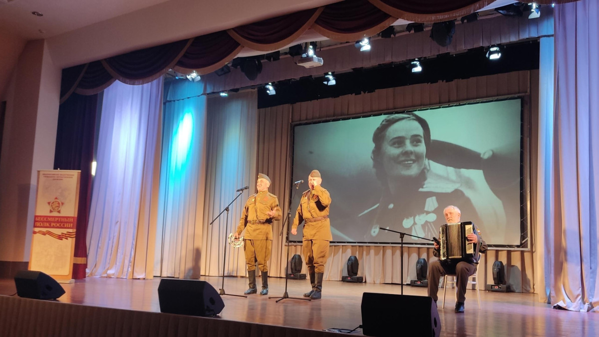 В рамках встречи звучали любимые песни военных лет: "Катюша", "Пилоты", "В землянке"... Зрители активно подпевали вокальному дуэту "Два дубки". Слова всех песен, исполняемых в музыкальной части встречи, собраны в отдельный Телеграм-канал, и все, кто не помнил текст, могли подглядывать его в нём.