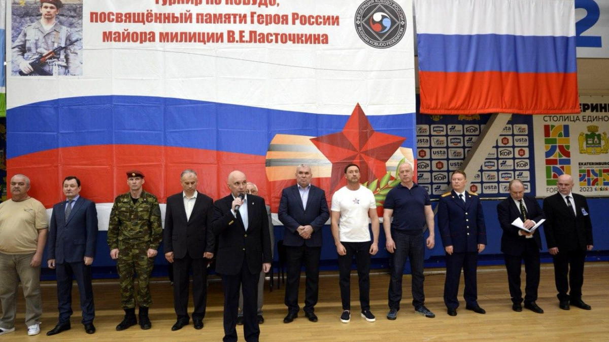 Участников соревнований поздравили с ярким спортивным событием военнослужащие, представители общественных организаций, в частности начальник ОСН "Россы" ГУФСИН РФ по Свердловской области, руководитель штаба регионального отделения Бессмертного полка России в Свердловской области Сергей Боровиков. В своём выступлении Сергей Юрьевич отметил, что сегодняшний турнир – это не просто спортивные соревнования. Турнир имеет важное воспитательное значение, он посвящён памяти настоящего защитника Отечества Владимира Ласточкина. Совсем скоро у нас День Победы, и все герои, павшие за Отечество во всех войнах и локальных конфликтах, будут с нами в едином строю Бессмертного полка России.