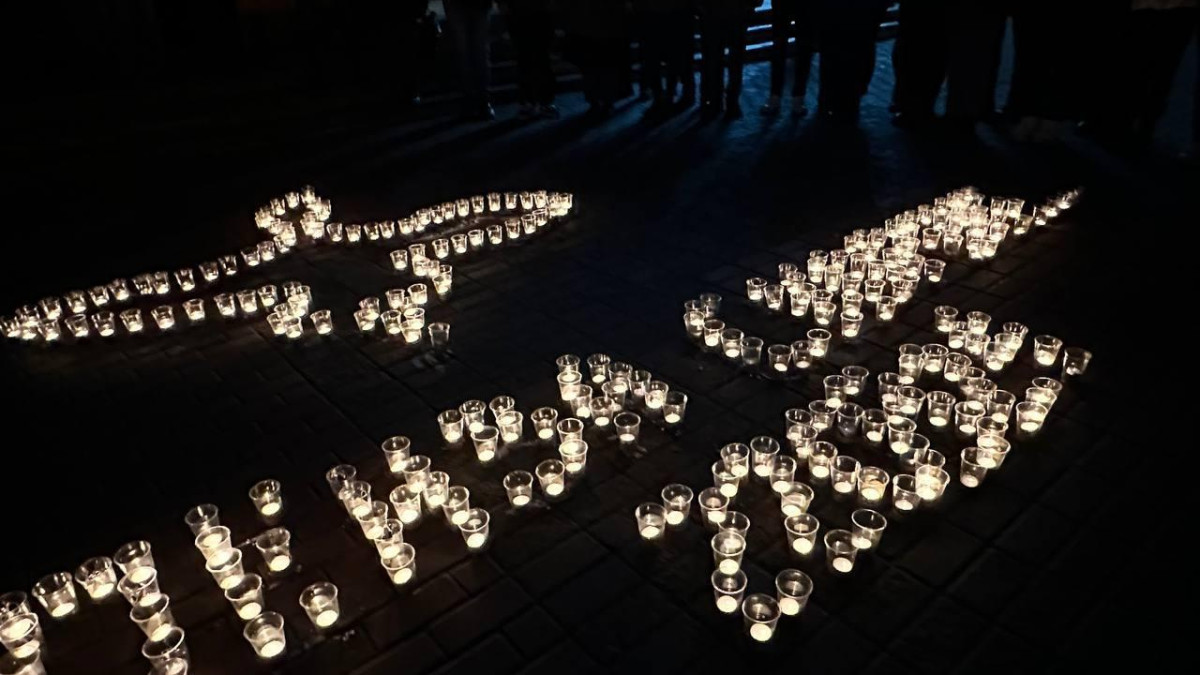В Пензе на площади возле Дома молодежи в одно время с Москвой зажглись десятки свечей, образовавших контуры фигуры журавля.