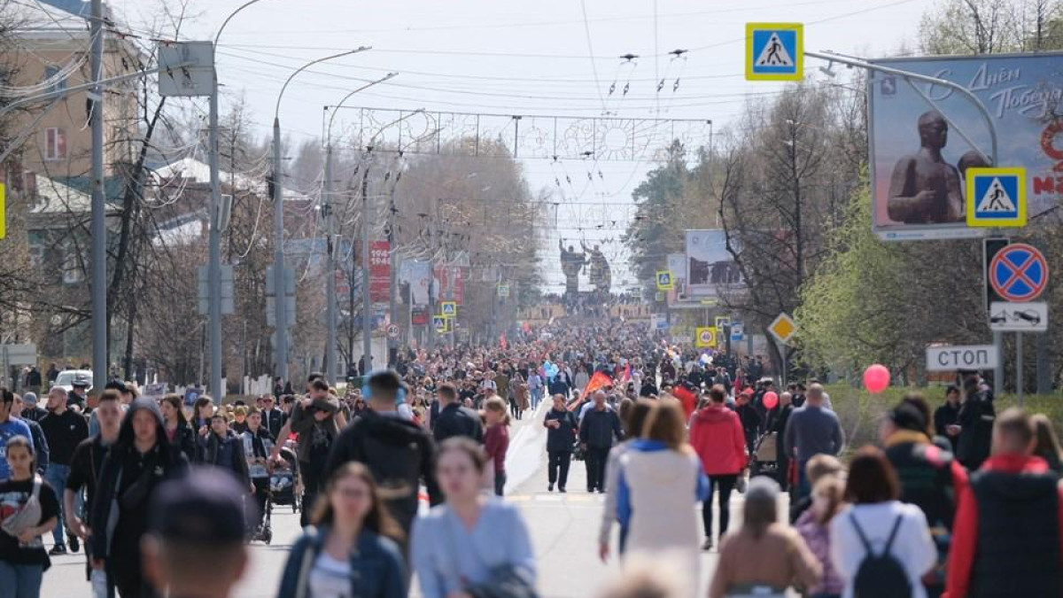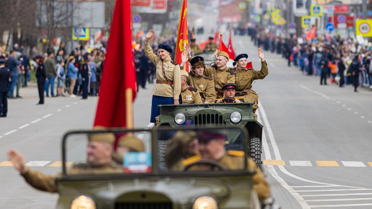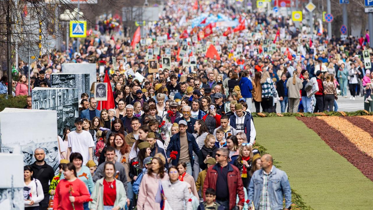 9 мая в Томске после традиционного торжественного парада с проходом техники времен Великой Отечественной войны десятки тысяч людей прошли по проспекту Ленина с портретами своих героев и цветами, которые возложили к Вечному огню и стелам с именами защитников Отечества в Лагерном саду.