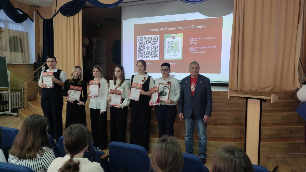 Восьмиклассники 22 школы Тюмени стали участниками встречи с командой регионального отделения Бессмертного полка России в рамках проекта-победителя конкурса грантов губернатора региона «Чтобы помнили».
