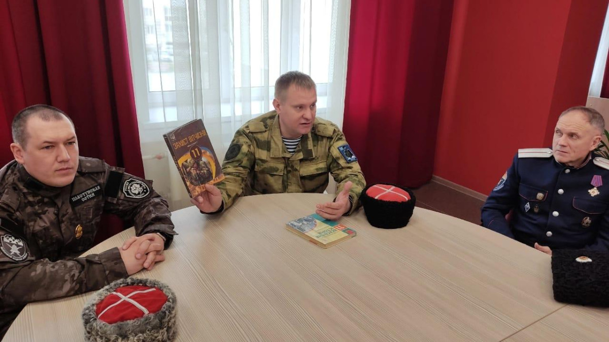 В Саратове ученики кадетского класса лицея «Солярис» приняли участие в круглом столе с участниками СВО в рамках проекта «Герои среди нас». В мероприятии приняли участие руководитель регионального исполкома Бессмертного полка России по Саратовской области Андрей Бердников, командир Пластунской сотни Саратовского отдела Волжского казачьего войска Сергей Фролов и подхорунжий Пластунской сотни Саратовского отдела Волжского казачьего войска, учитель английского языка лицея «Солярис» Артур Шуликин.