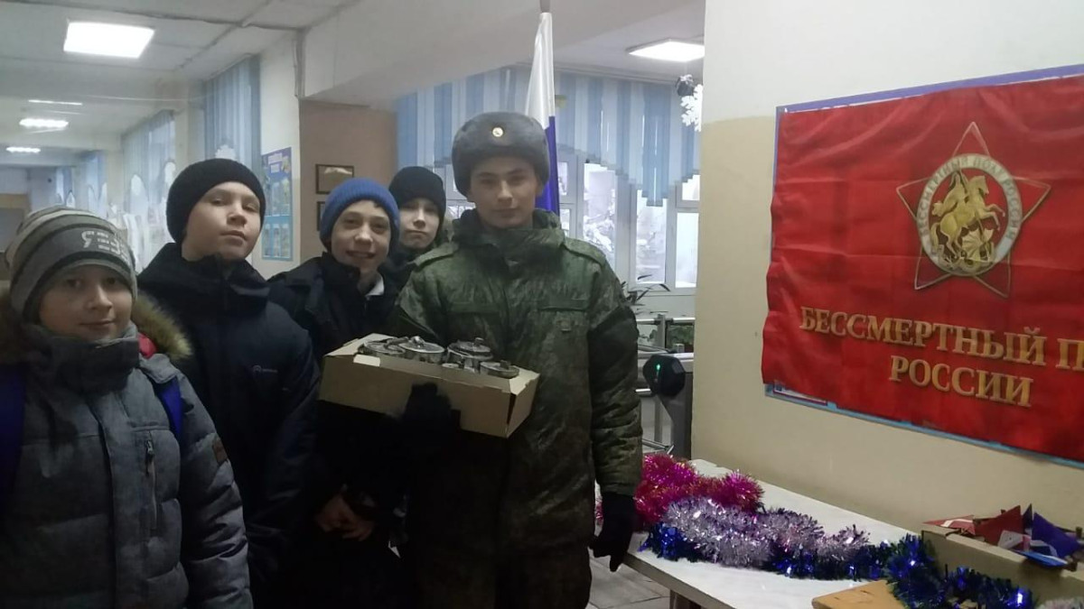 Ученики и педагоги школы № 92 города Екатеринбурга передали через военнослужащих воинской части окопные свечи и письма для участников специальной военной операции