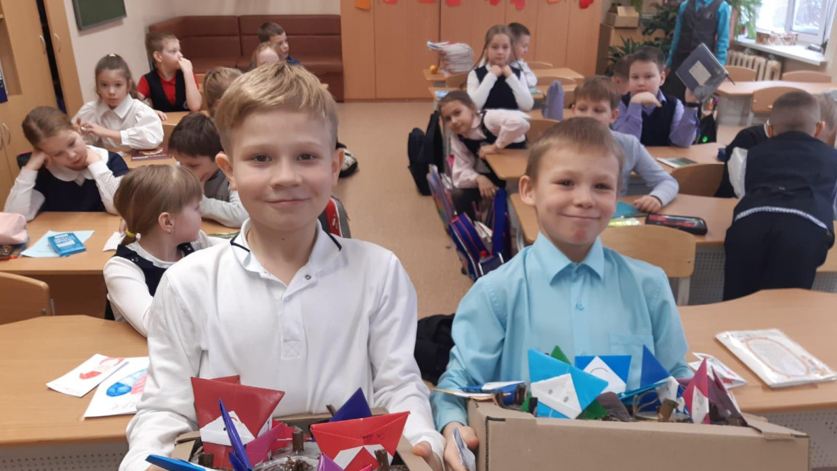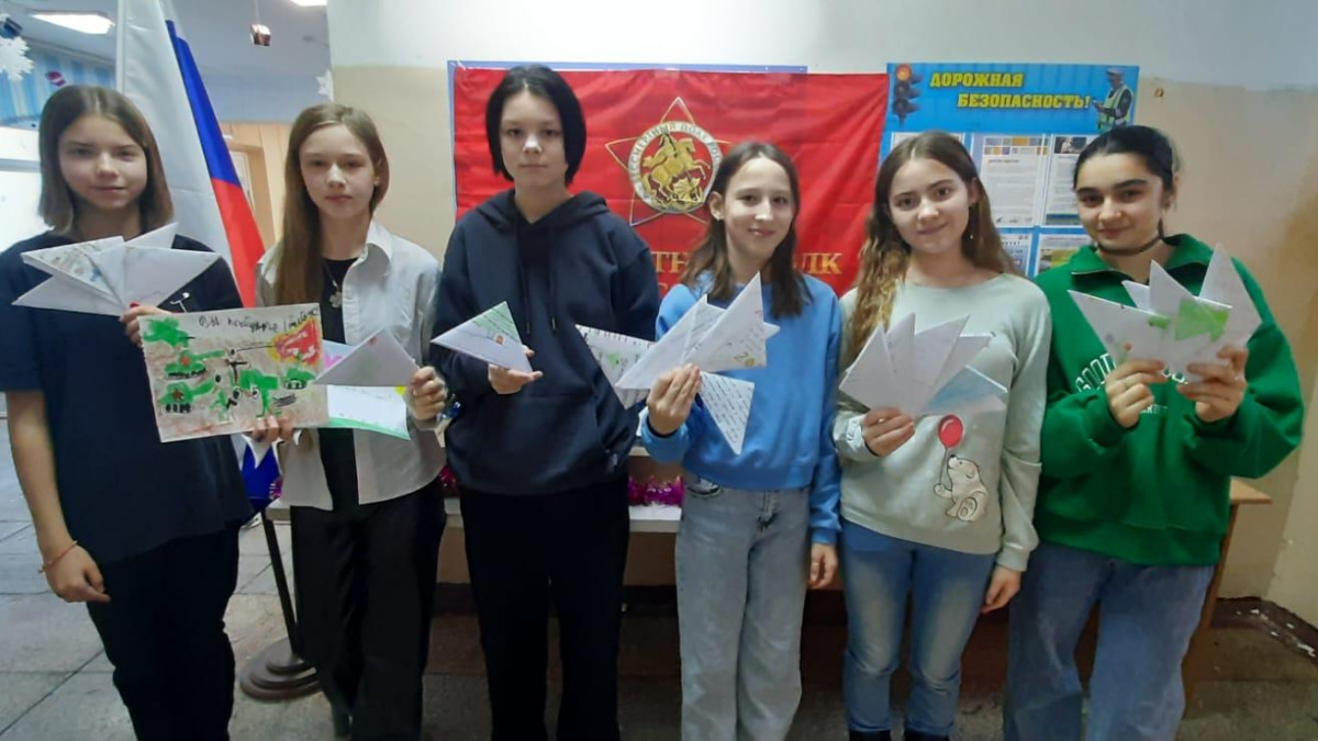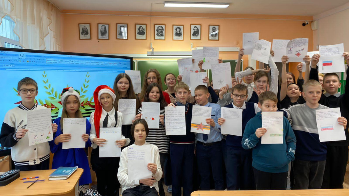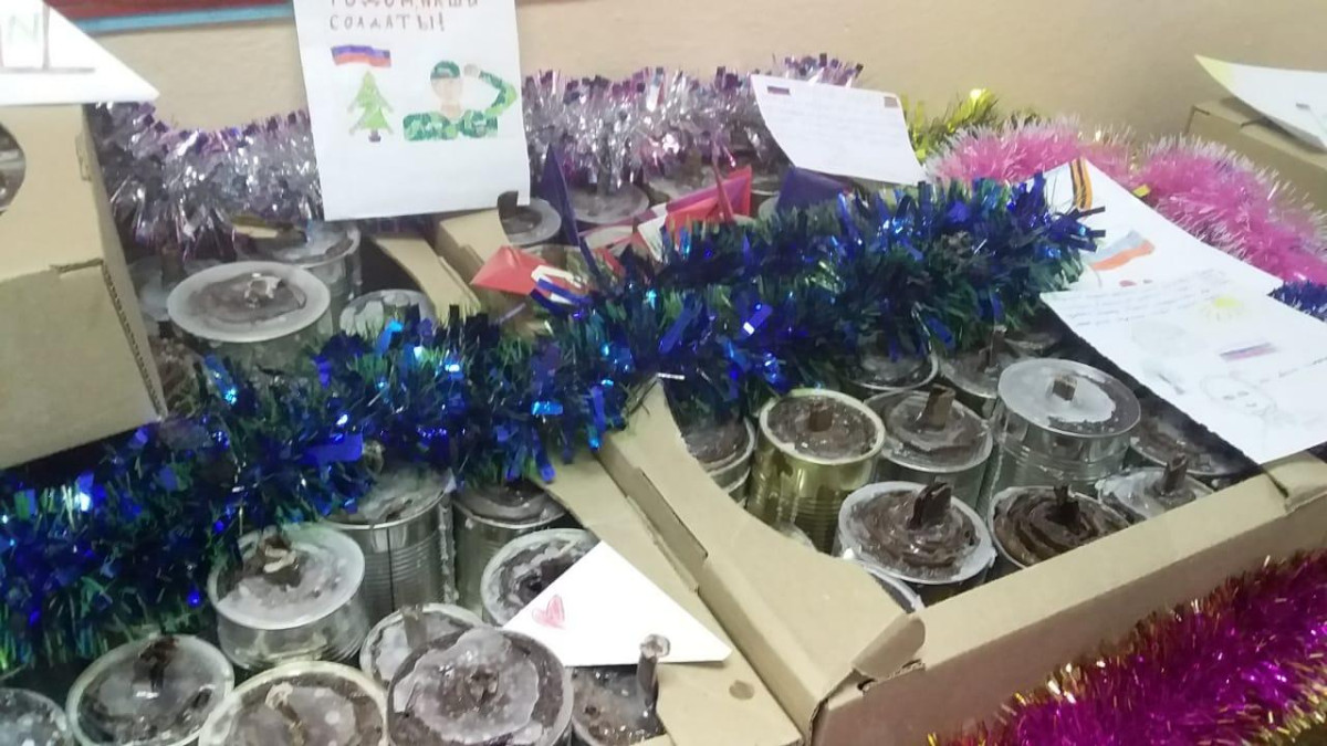 Накануне ребята на уроках труда самостоятельно изготовили окопные свечи, ученики младших классов оформили готовые свечи бумажным Дедом Морозом, снежинками и открытками, ученики старших классов написали участникам СВО письма со словами поддержки и поздравлениями с Новым годом.