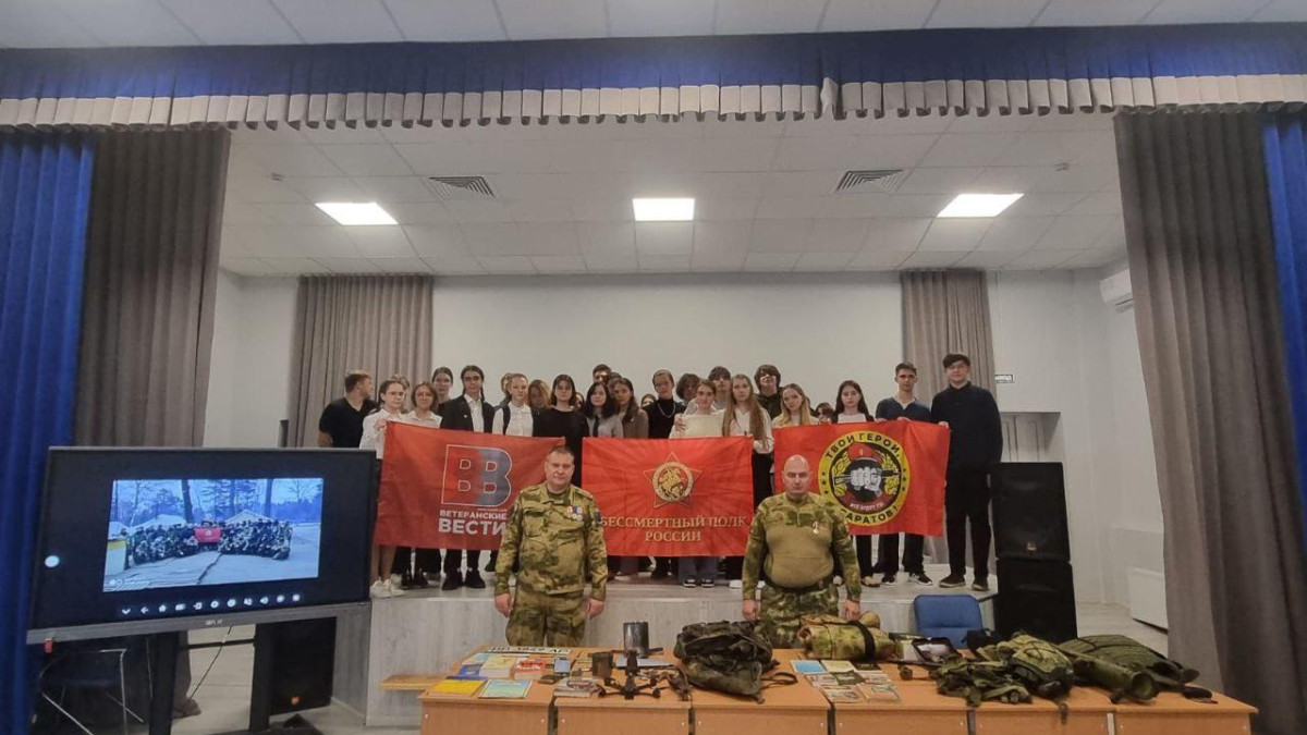 В гимназии №3 города Саратова прошел «Урок Мужества» для старшеклассников. Его провели участник СВО, руководитель исполкома регионального отделения Бессмертного полка России Андрей Бердников и волонтёр ассоциации «Твои Герои, Саратов» Дмитрий Молоков. Ребята с интересом послушали истории с зоны боевых действий, узнали о важности волонтерства и о том, что можно сделать для наших военных. А в конце ученики увидели и потрогали настоящие предметы военнослужащих и даже примерили боевую форму.