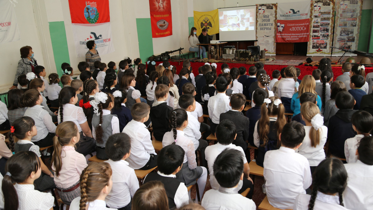 В Астраханской области по приглашению администрации Володарского района областная общественная организация по патриотическому, правовому и физическому развитию молодежи, региональное отделение Бессмертного полка России при поддержке представителей поисковых отрядов "Память", "Дельта", "Боевое Братство-Астрахань" регионального отделения Поискового движения России и администрации Тумакской средней школы организовали и провели для учеников всех параллелей Уроки мужества "Мы помним подвиг солдата".