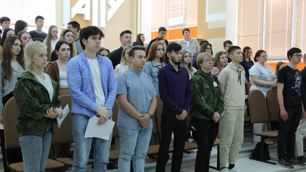 Студенты и представители студенческого поискового отряда «Подвиг» АГТУ выступили с презентациями и рассказали о героях-астраханцах. Рассказали о тех, чьи подвиги были удостоены высшего звания Герой России, о людях, которые каждый день проявляют мужество и героизм, защищая мирных жителей на Украине. Это настоящие примеры доблести и отваги, военнослужащие готовы отдать свои жизни ради победы над нацизмом и сохранения мира на земле.