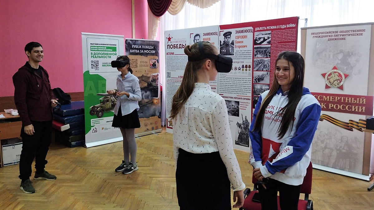 Вместе с руководителем регионального отделения Бессмертного полка России в Московской области, членом Общественной палаты региона Валерием Анисимовым ученики красногорской гимназии №7 виртуально перенеслись в 1945 год, в штурмуемый Рейхстаг, прошли по пути красноармейцев и водрузили виртуальные Знамена Победы в проекте «Знаменосцы Победы», а еще узнали о двух уроженцах Подмосковья, которые руководили знаменными группами, в числе первых водрузивших Красные Знамена в Берлине.