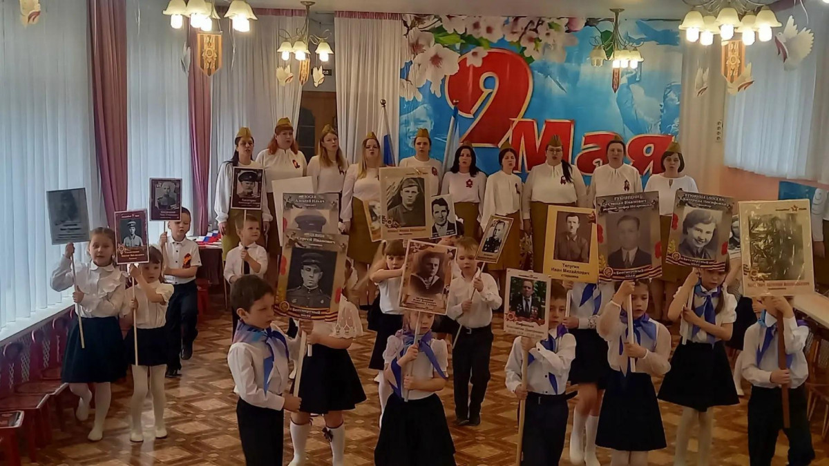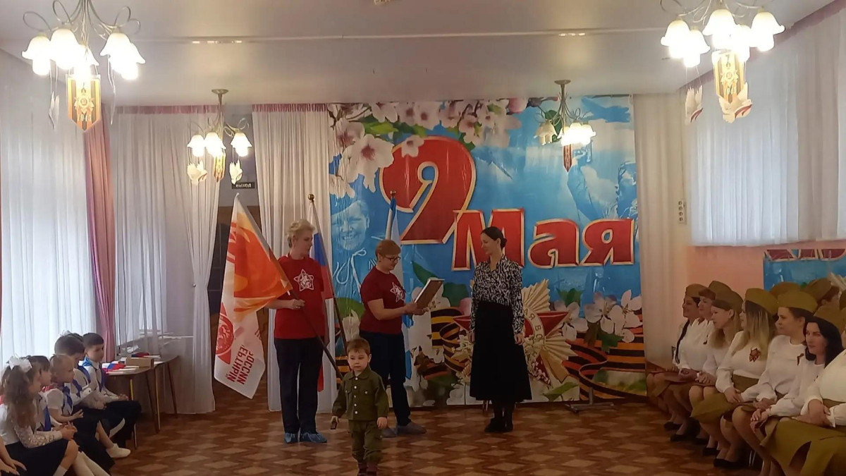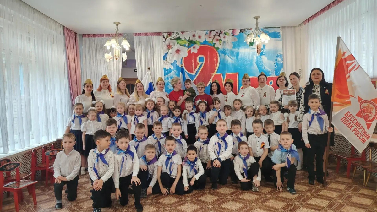 Перед процедурой вручения в большом зале дошкольного учреждения прошла детская рота Бессмертного полка России. Совсем маленькие люди большой планеты Земля маршировали в одном ряду со своими прапрадедами, гордо держа их портреты. Звучали особенные по смыслу стихи и песни в исполнении детей и воспитателей.