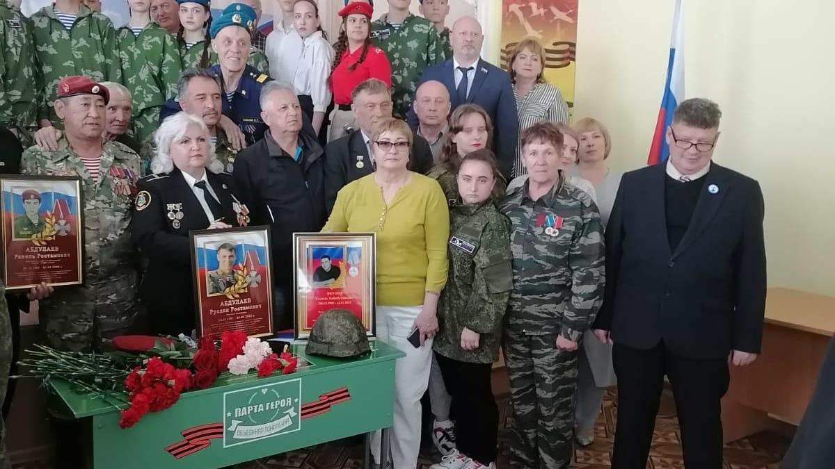 В школе №20 города Астрахани прошла акция «Парта героев», открытая в честь погибших в боевых действиях выпускников. Отдать дань памяти и уважения пришли их близкие, учителя, школьники и представители регионального отделения Бессмертного полка России в Астраханской области. Также во дворе школы были посажены деревья в память о трех героях-выпускников школы.