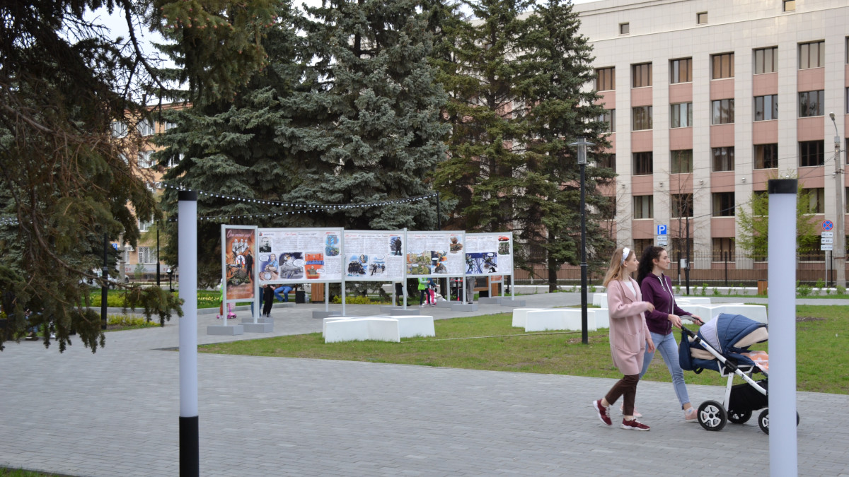 В честь Дня Победы в Сквере студенческих отрядов в Челябинске открылась вторая выставочная экспозиция «Боги войны из Челябинской области. Они спасли мир».