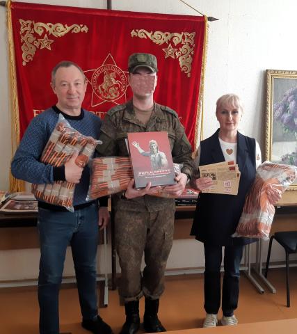 Российского воинства - в региональном штабе Бессмертного полка России председатель Совета шефов воинских частей, заместитель директора Центра «Авангард» Игорь Михайлов вместе с руководителями регионального отделения ООД «Бессмертный полк России» в Челябинской области передали представителю гвардейского Краснознаменного орденов Жукова, Суворова, Кутузова, Невского Оренбургского казачьего танкового полка