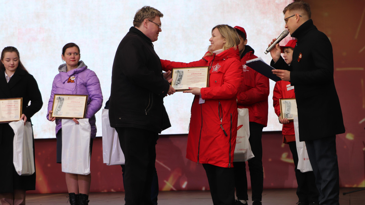 Представитель Исполкома Бессмертного полка России Мария Толстихина поздравила авторов лучших работ с Днем Победы, пожелала им покорения новых творческих высот и выразила надежду вновь увидеть всех через год, когда будут чествовать победителей конкурса «Пробуждая сердца»-2025.