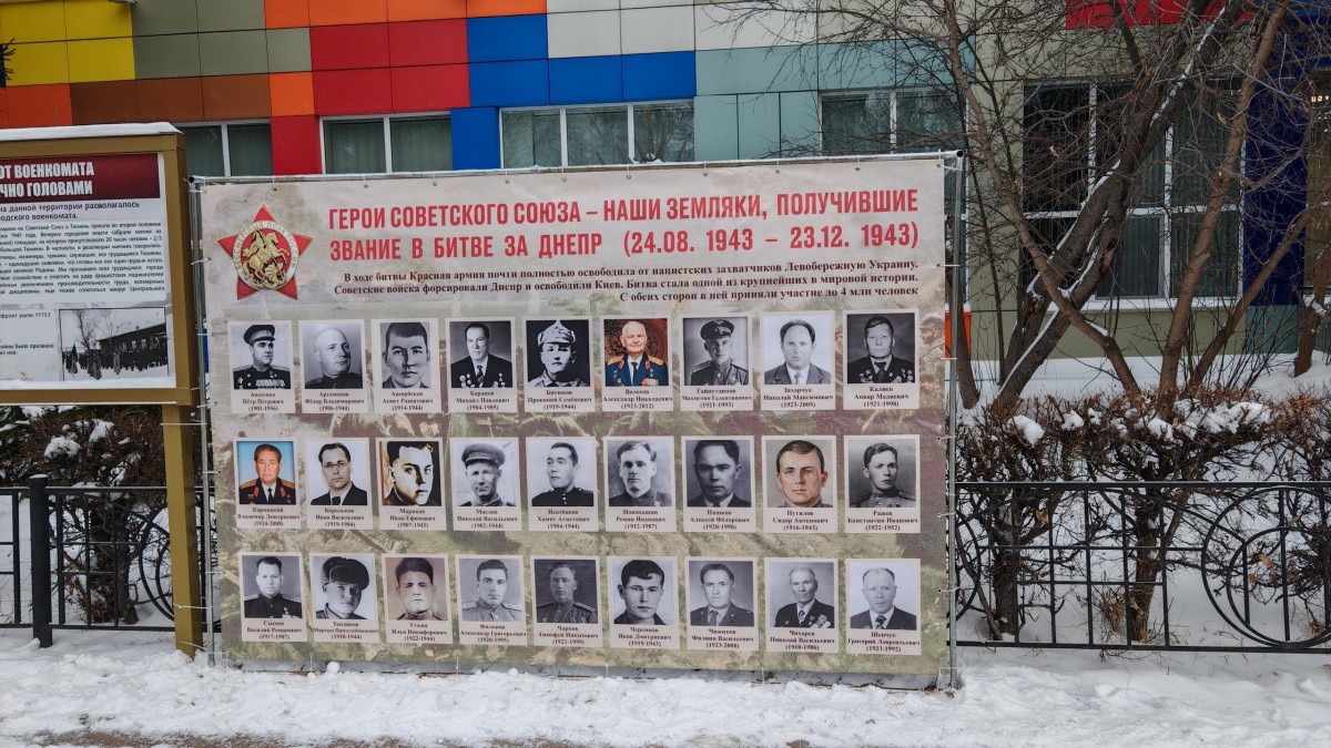 С сегодняшнего дня жители Тюмени могут познакомиться с тюменцами, освобождавшими Украину в далеком 1943 году, и увидеть их лица на баннере на улице Республики 51.