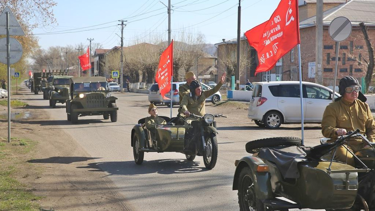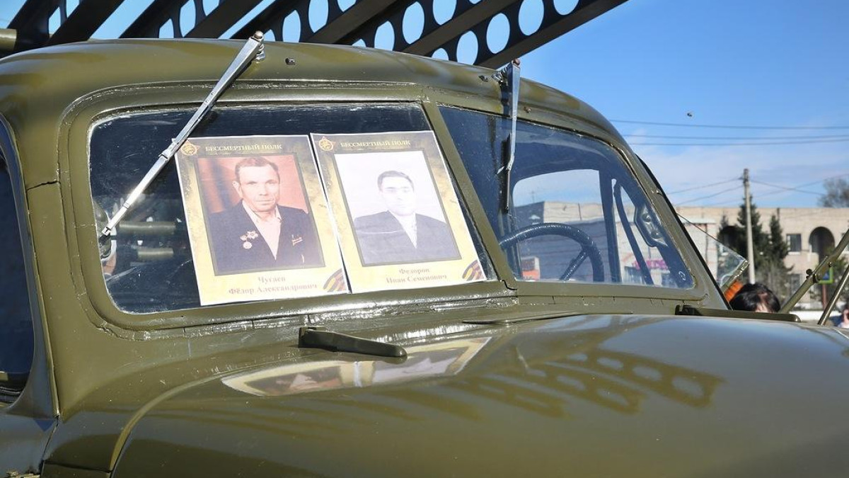 Не забывают своих родных, победивших в Великой Отечественной войне, и в Хакасии. По улицам Усть-Абакана проехал «Бессмертный автополк» с участием военной ретро-техники. В составе колонны была легендарная «Катюша» - советская боевая машина реактивной артиллерии. Жители города могли увидеть фото героев-земляков – на стеклах автомобилей были размещены портреты ветеранов Усть-Абаканского района.