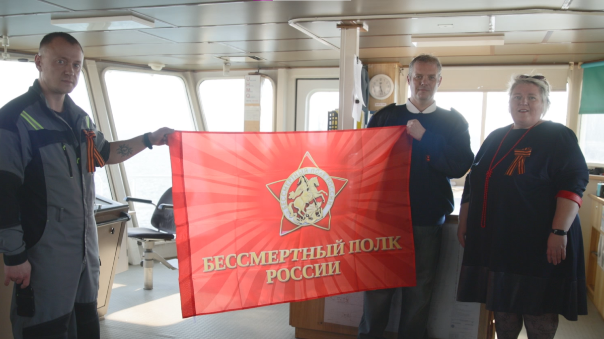 Совместно с региональным отделением Бессмертного полка России Камчатское морское пароходство отправило в рейс судно Камчатского морского пароходства с растяжкой акции на борту. Баннер Бессмертного полка России был размещён на теплоходе «Юрий Тарапуров»; руководитель штаба регионального отделения «Бессмертного полка России» Анна Васильева также передала капитану теплохода флаг общественного движения, который будет с экипажем весь рейс. В этом году экипаж судна будет отмечать День Победы в рейсе: теплоход отправляется в Находку. Традиционно экипаж соберётся на праздничный обед и будет вспоминать своих героев, делиться семейными историями.