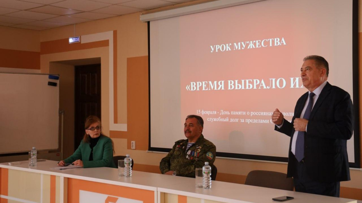 12 февраля 2026 года в Астраханском государственном техническом университете состоялся урок мужества «Время выбрало их», приуроченный к Дню памяти о россиянах, исполнявших служебный долг за пределами Отечества. Мероприятие организовано музеем истории АГТУ совместно с региональными отделениями Поискового движения России и Бессмертного полка России.