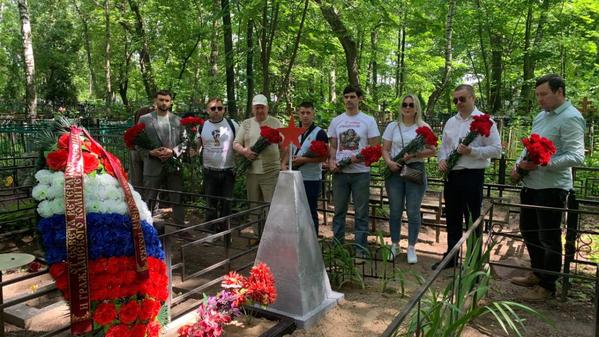 Делегация активистов в лице руководителя регионального отделения Бессмертного полка России в Московской области Валерия Анисимова, лидера Гражданского комитета России Артура Шлыкова, работников АО "Честный Агент" и Совета ветеранов города возложили венок к могиле красноармейца.