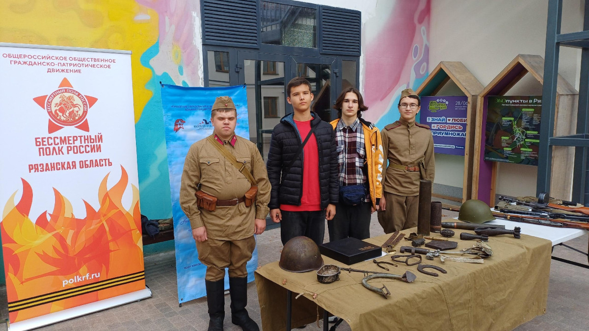 Активисты движения «Бессмертный полк России» совместно с Рязанским региональным отделением «Поисковое движение России» организовали выставку военных артефактов, найденных на полях сражений Великой Отечественной войны, а также образцов стрелкового оружия Красной Армии.