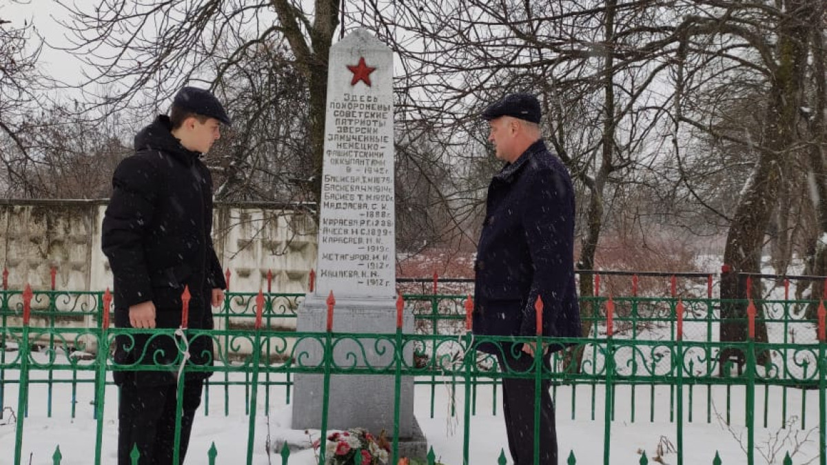 Несмотря на обрушившийся сегодня на Осетию снегопад, руководитель регионального штаба движения «Бессмертный полк России» Эльбрус Бокоев с сыном сочли своим долгом почтить память защитников Отечества в родном для Бокоевых селении Кадгарон.