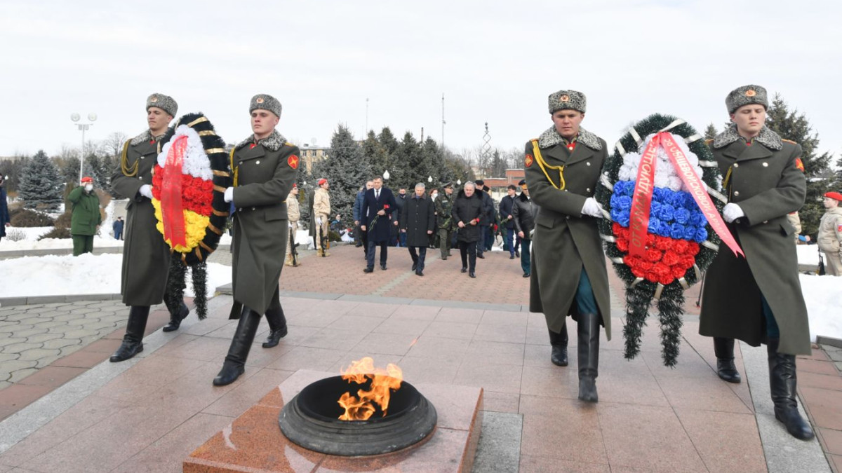 Венки и живые цветы в преддверии Дня защитника Отечества были возложены ко всем мемориалам и обелискам Северной Осетии. В городе Воинской славы Владикавказе цветы от благодарных потомков украсили подножия памятников дважды Герою Советского Союза Исса Плиеву, Герою Советского Союза Петру Барбашову, Мемориал и Аллею Славы. Десятки людей пришли отдать дань памяти к стеле «Владикавказ — город воинской славы», Мемориалу на площади Победы, Мемориалу «Рубеж обороны Владикавказа». Во всех этих торжественных церемониях приняли участие активисты регионального отделения движения «Бессмертный полк России».