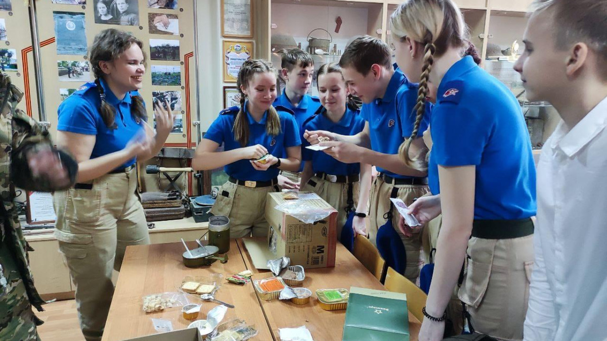 В ходе мероприятия учащиеся школы узнали о том, как осуществляется работа в этом направлении, посмотрели видеоролик, посвященный первому сбору гуманитарной помощи в стенах учебного заведения «Дети Воронежа - детям Донбасса», примерили на себя защитное обмундирование бойцов Вооруженных Сил РФ и попробовали суточный рацион питания солдата.