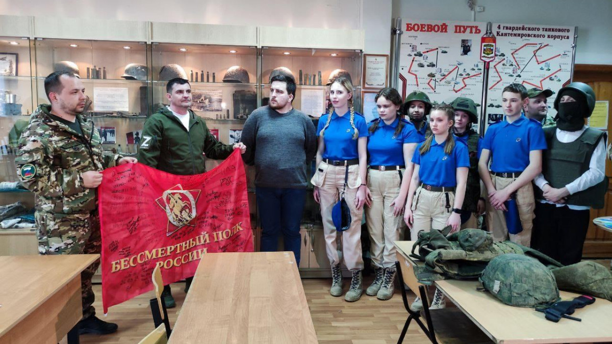 В завершении мероприятия администрации школы был вручен единственный в своем роде флаг Бессмертного полка России с личными подписями более полусотни бойцов, находящихся в зоне СВО. Этот флаг занял почетное место в экспозиции музея. Стены музея также украсили рисунки члена штаба регионального отделения Бессмертного полка России в Воронежской области Александра Шершова.