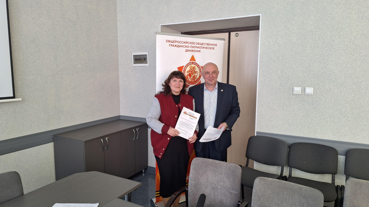 Завершилось мероприятие показом видеоролика с песней «Бессмертный марш» народного артиста России, члена Центрального совета Движения Михаила Ножкина и общим фотографированием.