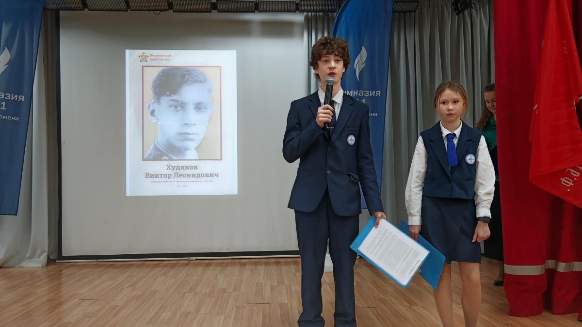 В свою очередь, учащиеся рассказали о выпускниках тогда еще школы №1, ставших Героями Советского Союза в годы Великой Отечественной войны. Одним из них был артиллерист Виктор Худяков.