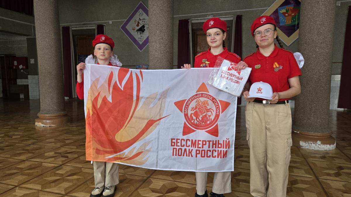 Ребятам сразу передали коробку с брендированной атрибутикой, которую они смогут использовать на праздничных мероприятиях ко Дню Победы.