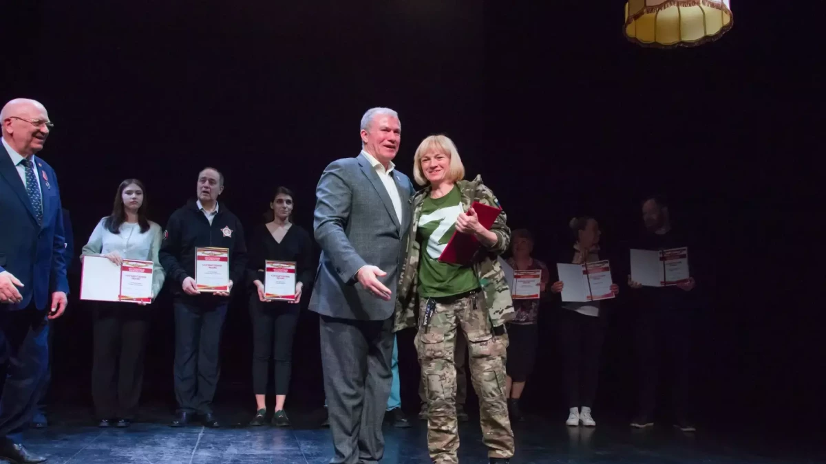 Перед мероприятием руководитель штаба Регионального отделения ООД "Бессмертный полк России" в г.Москве Михаил Грушин, Первый заместитель начальника московского штаба "ЮНАРМИИ" Владимир Кайгородов и Ветеран боевых действий, участник СВО Александр Шелковой вручили благодарственные письма волонтерам, помогающим фронту.