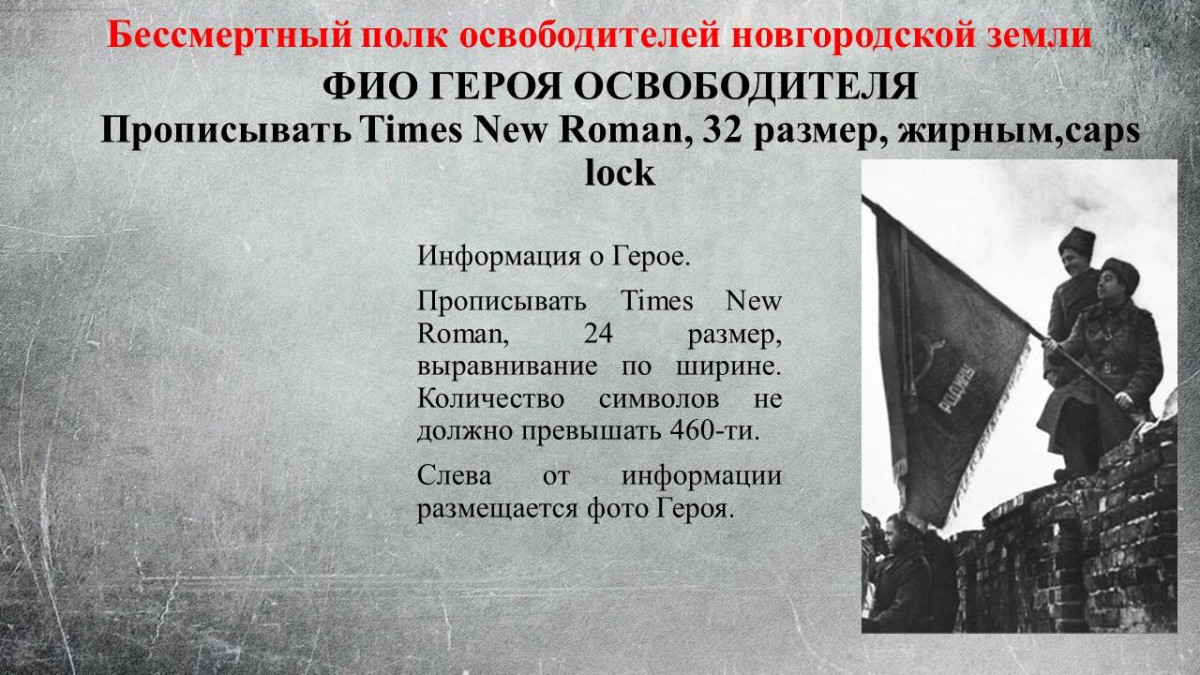 Региональное отделение Бессмертного полка России в Новгородской области напоминает о скором завершении сбора данных по проекту «Бессмертный полк освободителей Новгородской земли». Результаты будут подведены 20 января.