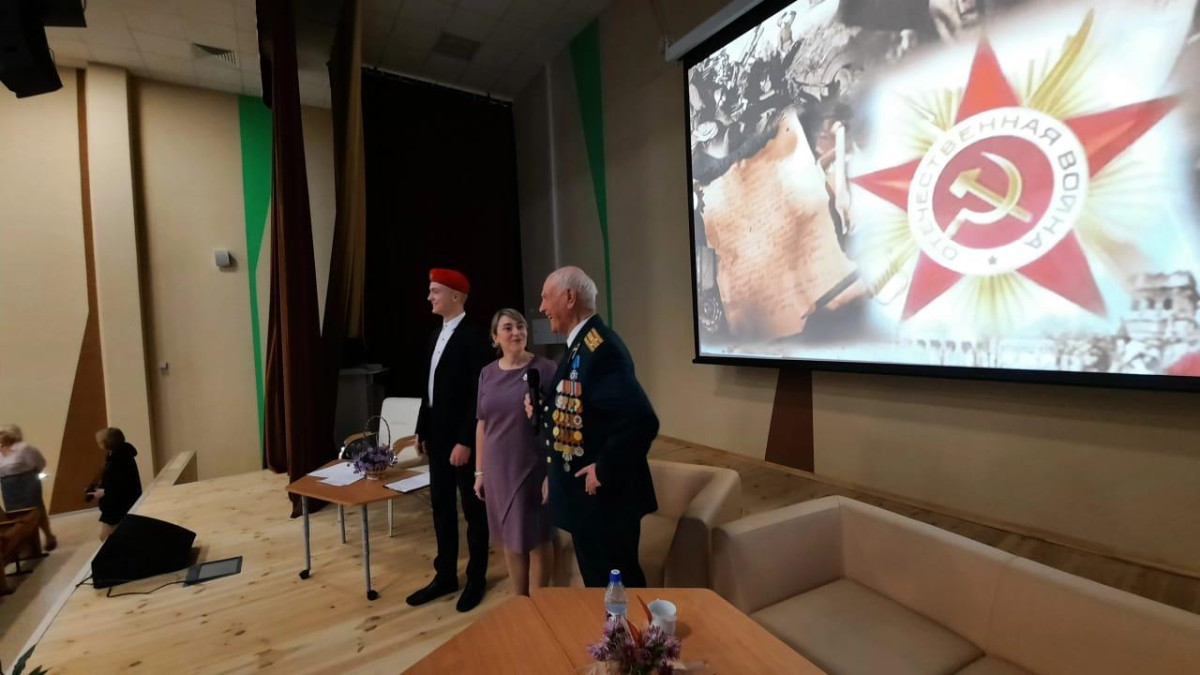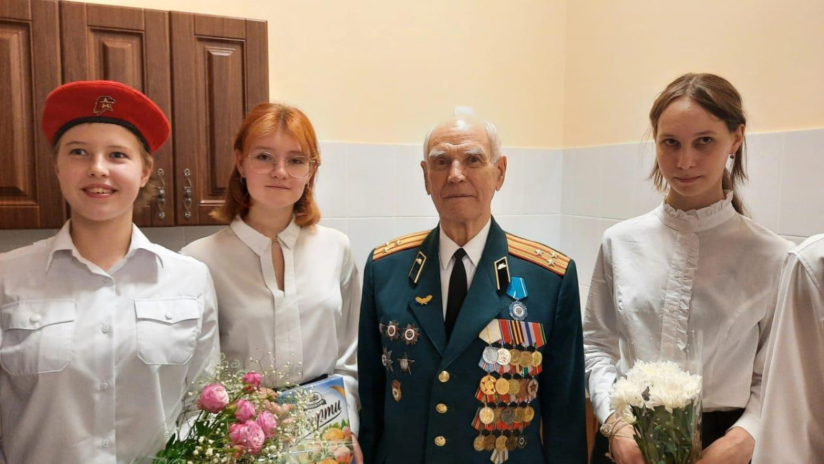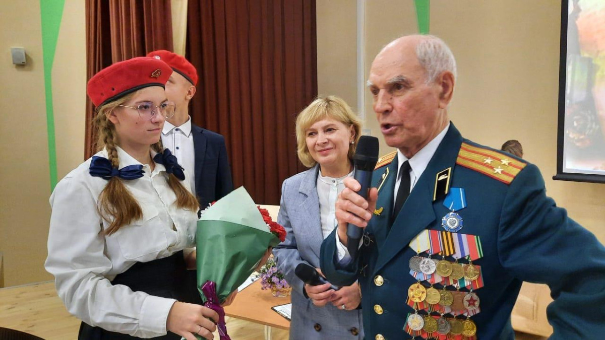 В актовом зале школы Николай Николаевич рассказывал учащимся о войне, о службе после неё в Кантемировской дивизии и об участии в 16-ти Парадах на Красной площади. Дети и учителя задавали интересующие вопросы.