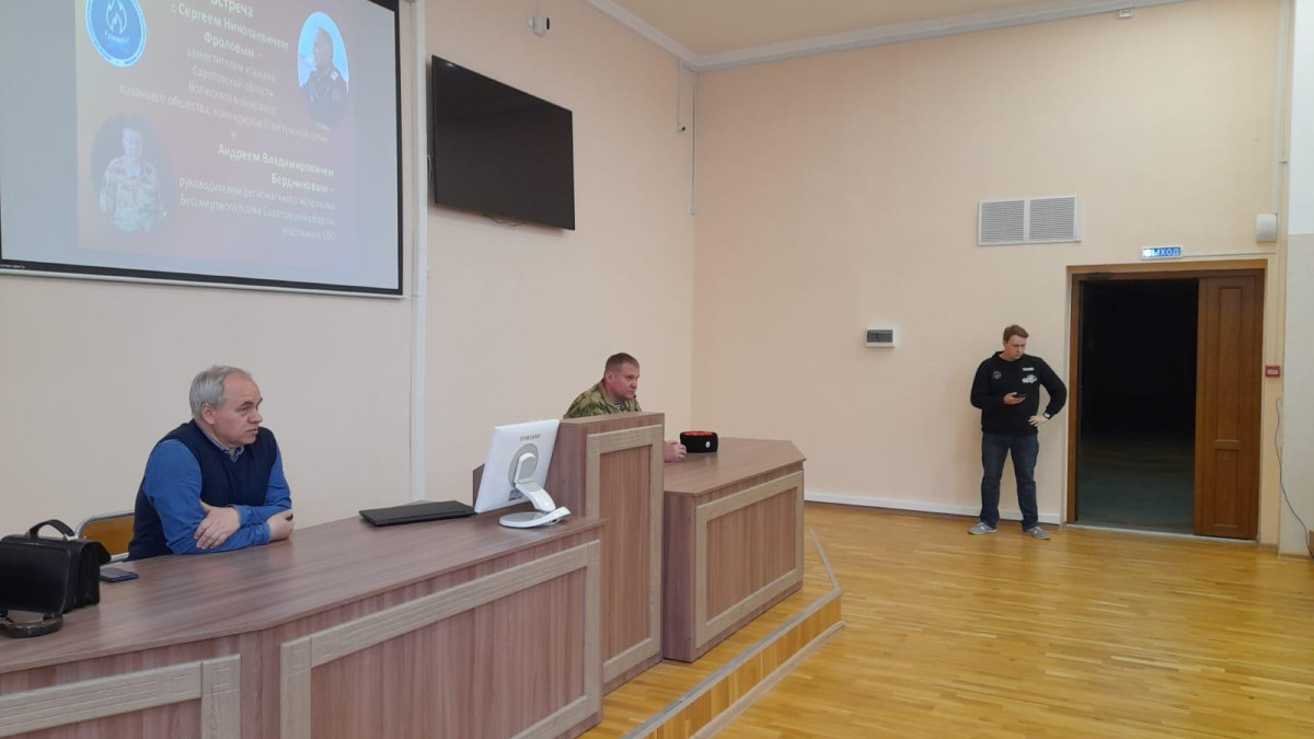 В рамках цикла мероприятий по военно-патриотическому воспитанию молодежи в Саратовском государственном университете генетики, биотехнологии и инженерии имени Н.И. Вавилова перед студентами выступил руководитель исполкома регионального отделения Движения Андрей Бердников. Вместе с представителями Окружного казачьего общества Саратовской области Бердников, как участник СВО, в том числе, поговорили о важности сохранения памяти о героических подвигах времен Великой Отечественной войны, о значении празднования Дня Победы, а также о подвигах героев России, участвующих в специальной военной операции. Рассказали и неизвестные ранее ребятам факты об истории и традициях казачества Саратовской области.