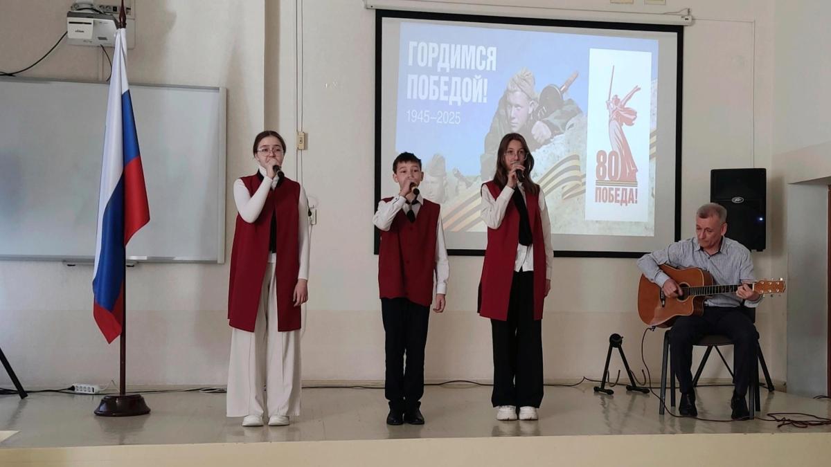 Лицеисты тоже приняли участие во встрече –Анастасия Бобова и Роман Овчинников поделились историями жизни и боевым путём своих прадедушек, воевавших на фронте и получивших заслуженные награды, поисковый отряд «Память сердца» исполнил военные частушки, а ВИА «Большая перемена» песню о Победе.