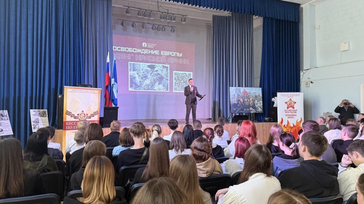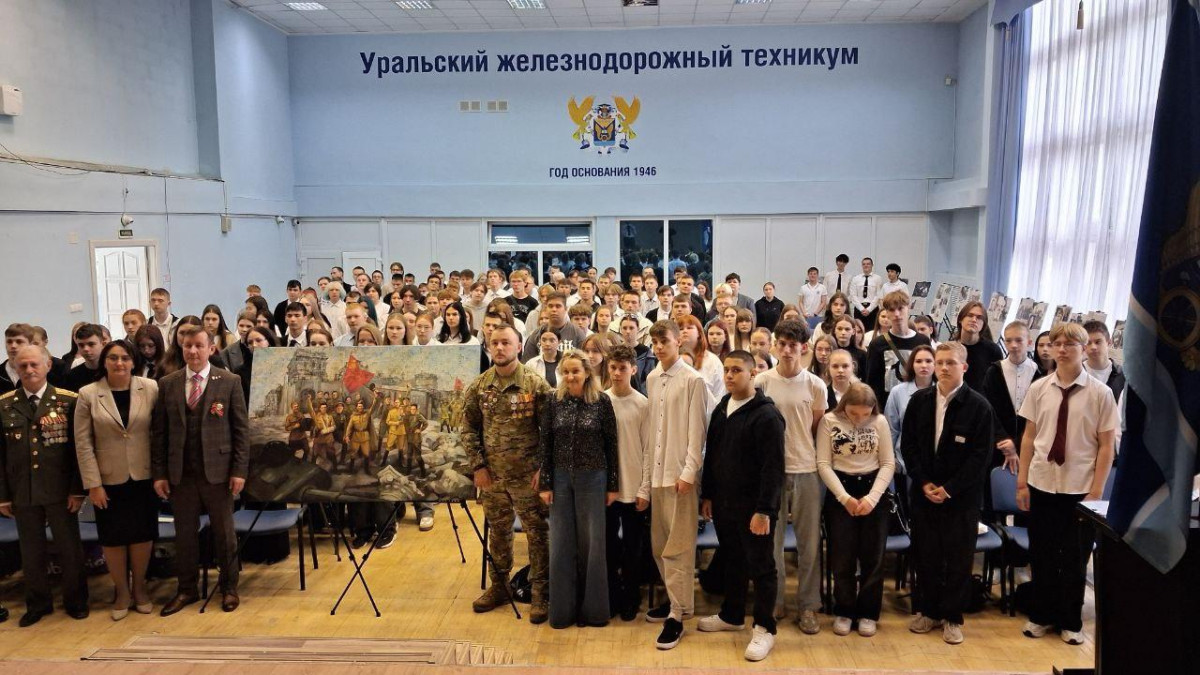 В актовом зале Уральского железнодорожного техникума в Екатеринбурге состоялась торжественная церемония открытия всероссийской выставки «Освободители Европы», организованная региональным отделением Бессмертного полка России в Свердловской области при поддержке Фонда президентских грантов. Мероприятие собрало 980 участников, включая студентов, преподавателей, ветеранов, бойцов СВО, представителей общественных организаций и жителей города.