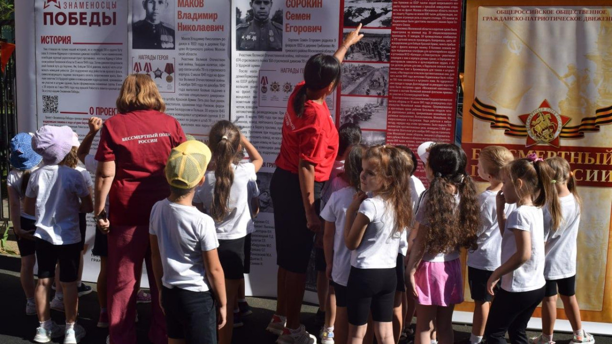 Многих ребят заинтересовал стенд «Знаменосцы Победы» - проект Бессмертного полка России. Ребята слушали истории о доблести Московской области в годы войны и двух руководителях Знамённых групп, водрузивших первые Красные Знамёна над немецким Рейхстагом 30 апреля 1945 года.