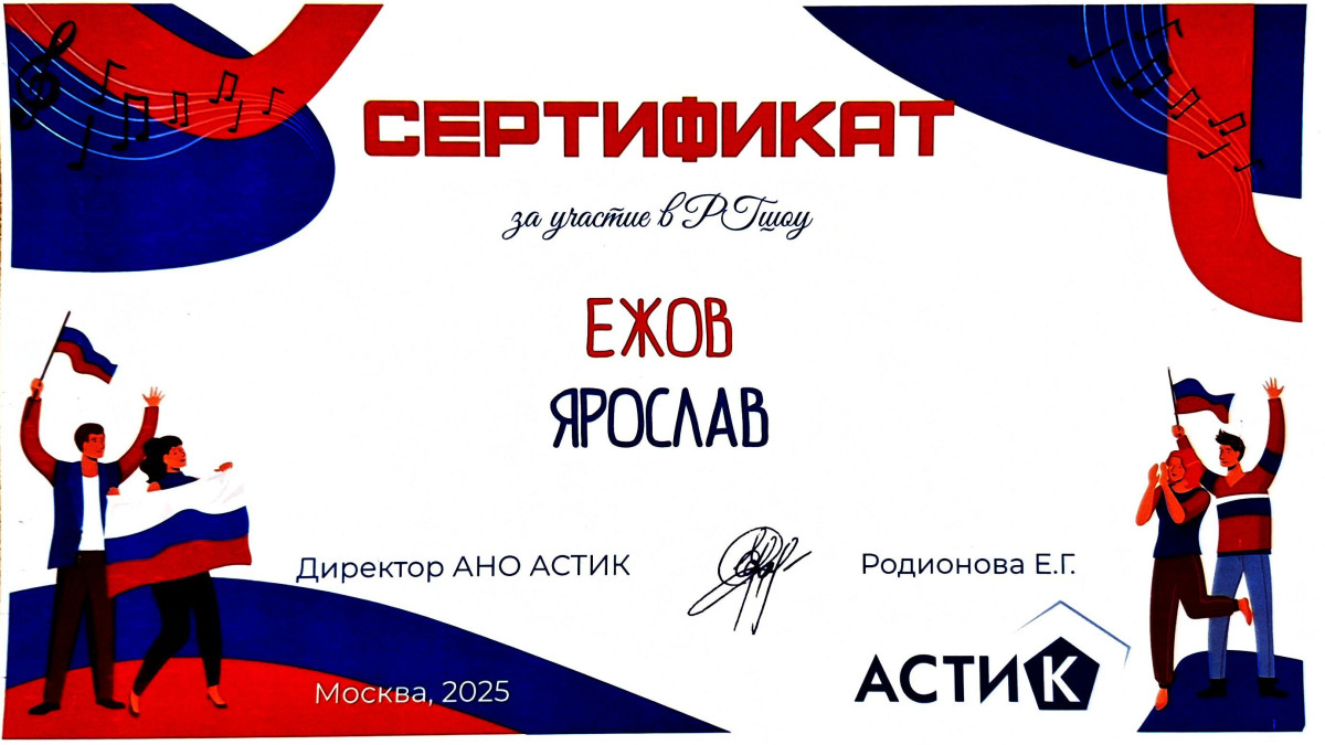 На форуме Ярослав выступил в «РГ-шоу» с произведением «На благо нашей великой России», написанным его отцом Павлом Юрьевичем Ежовым, руководителем исполкома Свердловского отделения «Бессмертного полка России».