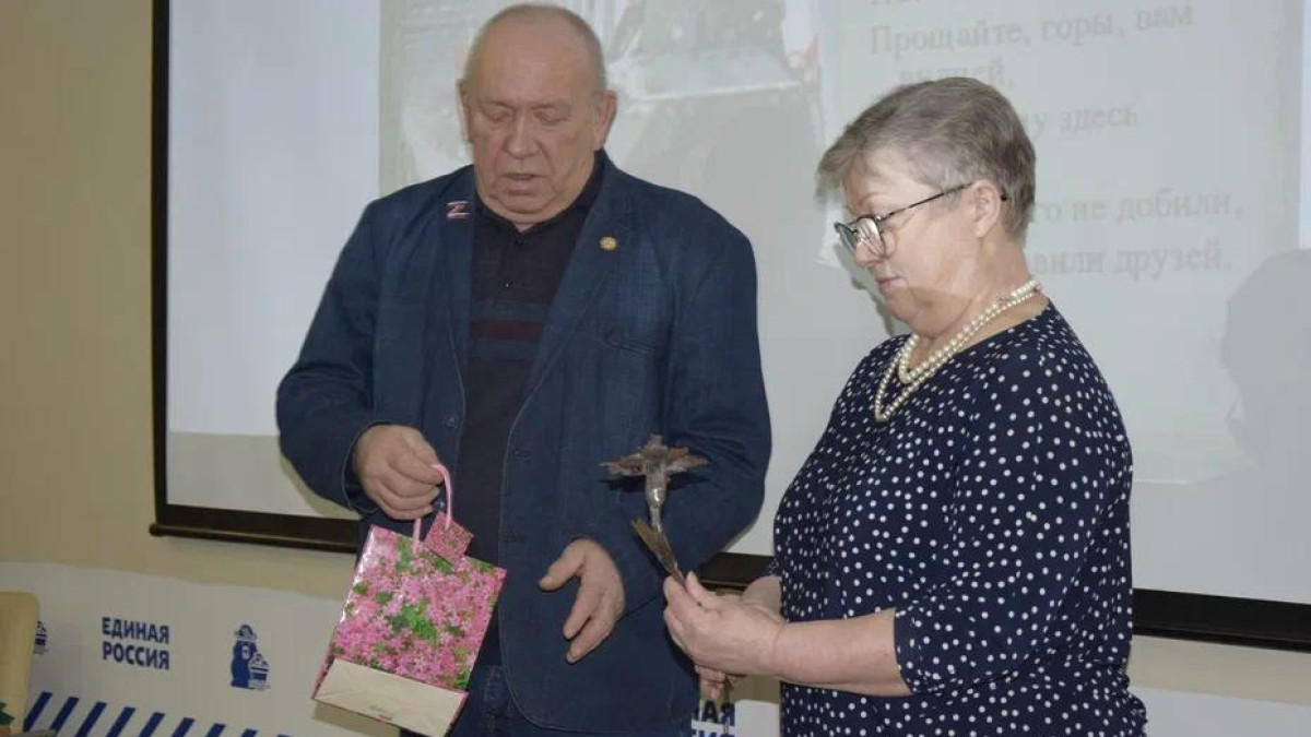 Трогательным и запоминающимся моментом встречи стало вручение кемеровскому штабу Бессмертного полка России председателем ветеранской организации, волонтером по сопровождению помощи в зону СВО Евгением Кулешом розы, сделанной из осколков боевого оружия, привезенного им из Луганска.