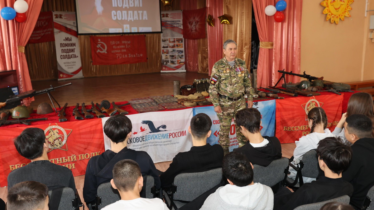 Более 2300 школьников и педагогов приняли участие в уроках «Мы помним подвиг солдата», которые провели руководитель штаба регионального отделения Бессмертного полка России Искандарбек Даиров и ветеран боевых действий Талгай Суюнчалиев. Они акцентировали внимание на личных судьбах защитников Отечества, а не только на исторических датах. Через архивную хронику и кадры о подвигах детей в Великую Отечественную, воинов-интернационалистов и современных героев, школьники увидели, что мужество не имеет срока давности.