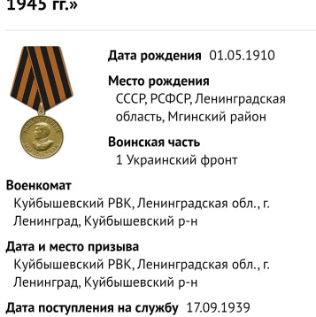 Место рождения: деревня Иваново, Лезьевский сельский совет, Мгинский район, город Санкт-Петербург
