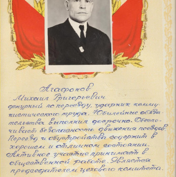 Путевой рабочий с 18.07.1960г. Калачинской дистанции пути. Ударник коммунистического труда.