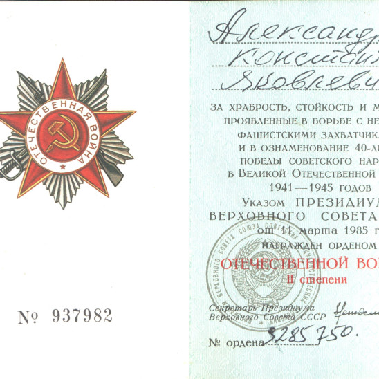 Александров Константин Яковлевич родился в 1923 году в г.Астрахани в семье Александровых Якова Васильевича (23.10.1876г.р.) и Марии Георгиевны. Помимо него в семье было еще двое детей - старший брат Игнат (1911 г.р.) и сестра Лидия (1926 г.р.).
