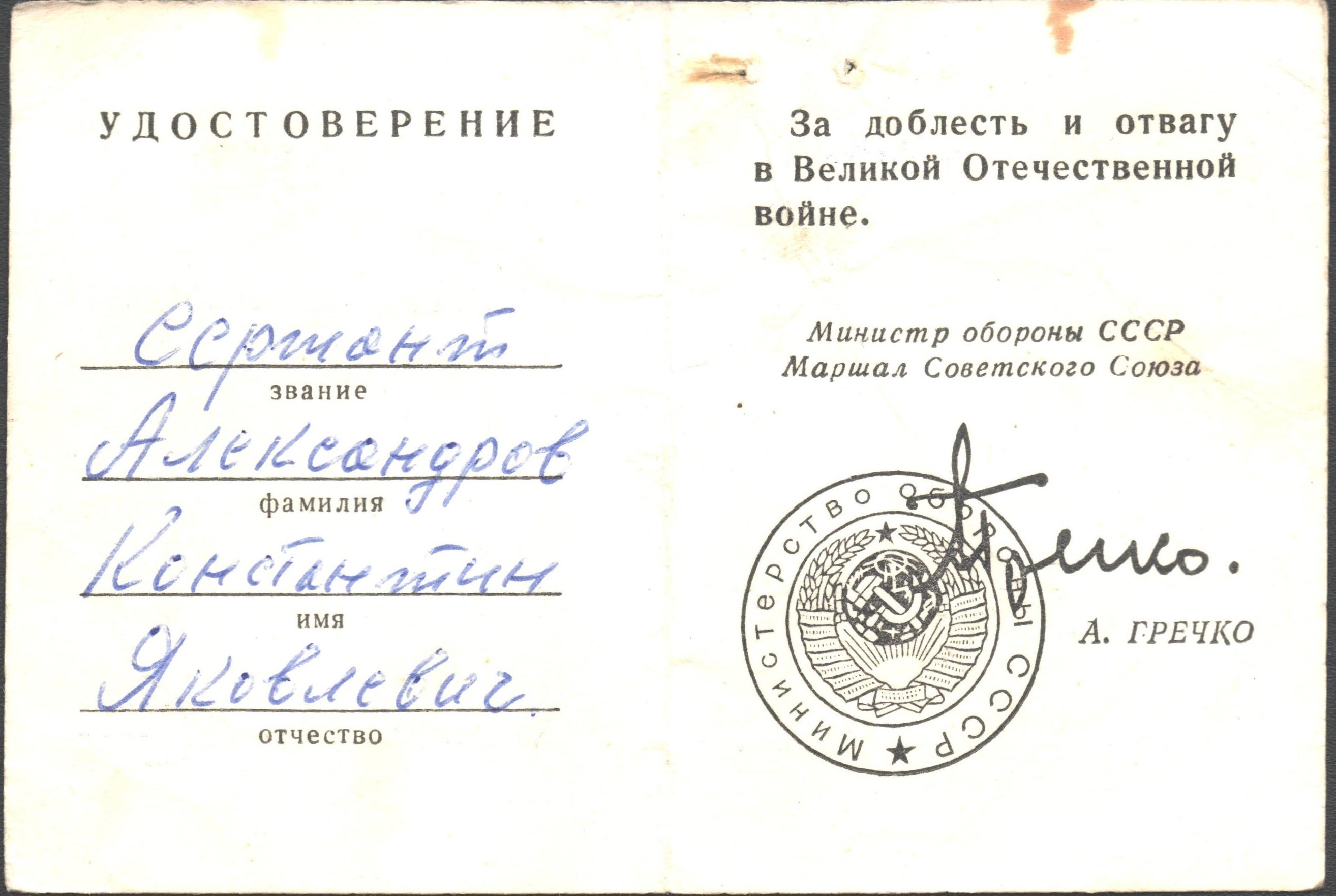 Михайловское) Константин "при отражении контратаки противника, невзирая на