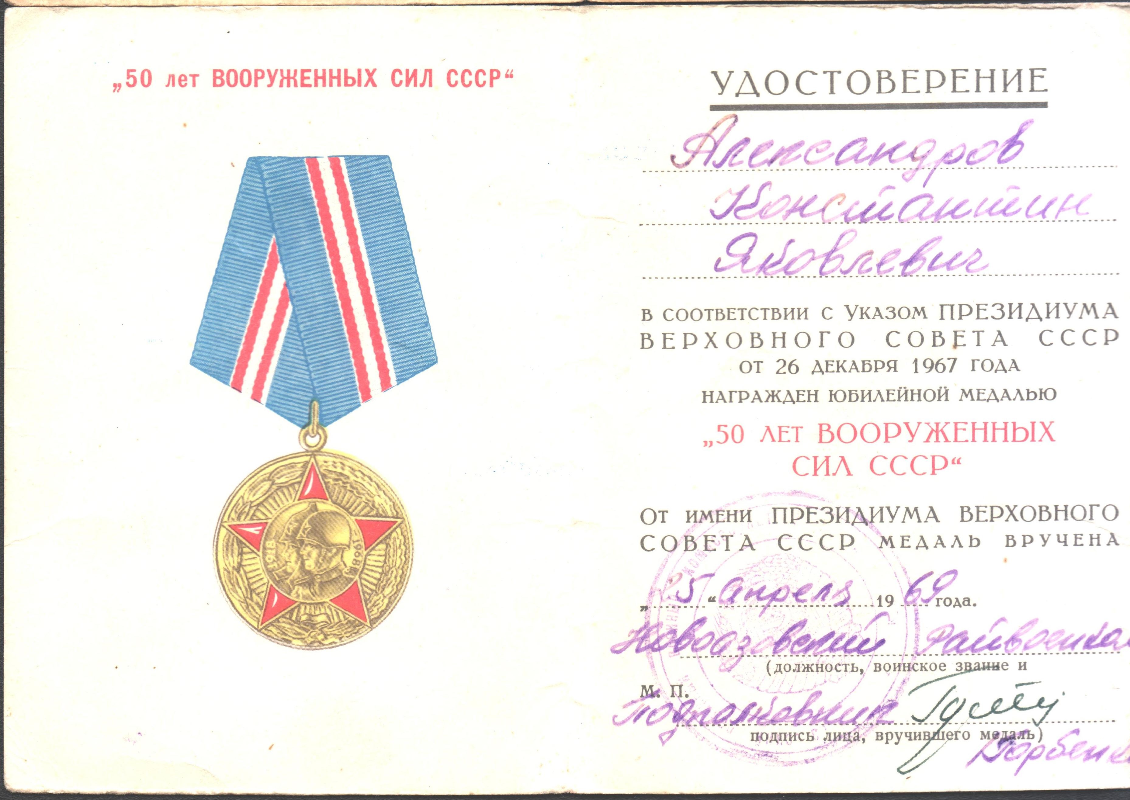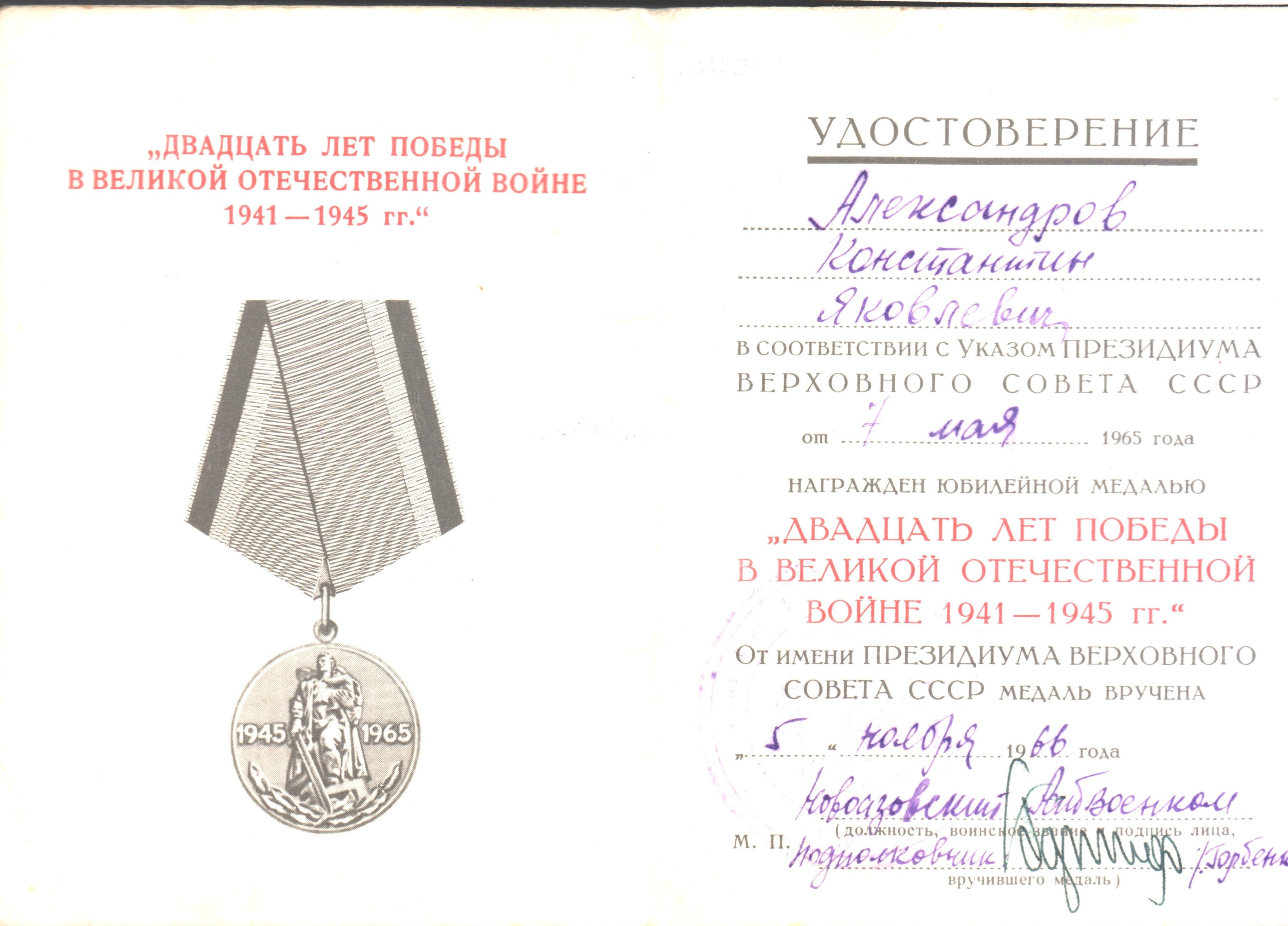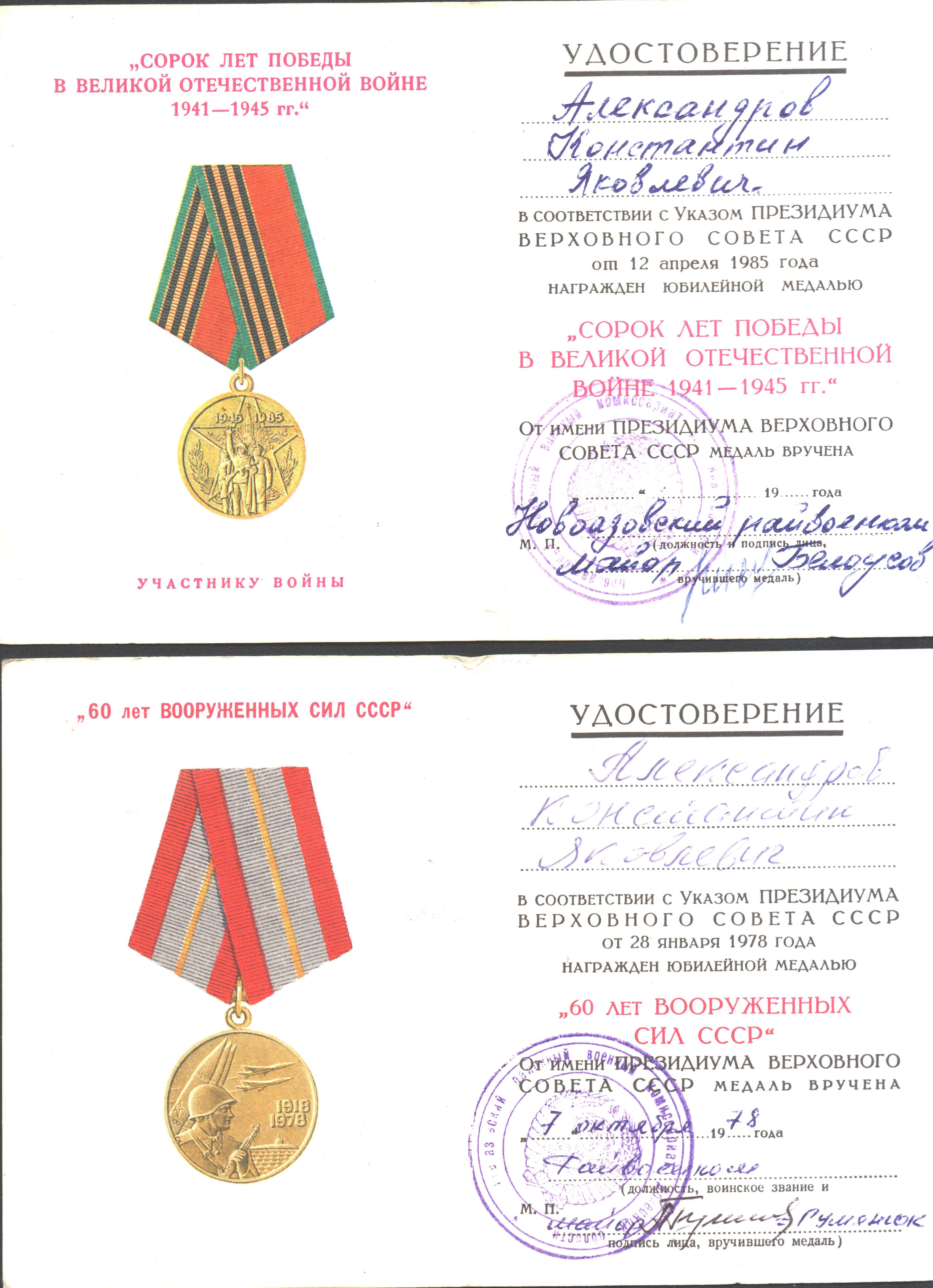 боевые заслуги, помимо вышеперечисленных, Константин также был награжден медалями «За взятие Кенигсберга», «За победу над